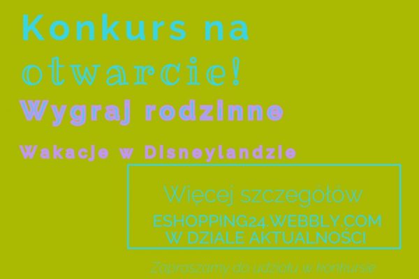 KONKURS NA OTWARCIE! WYGRAJ RODZINNE WAKACJE W DISNEYLANDZIE!!! WITAMY W NASZYM SKLEPIE INTERNETOWYM. ZAPRASZAMY DO UDZIAŁU W KONKURSIE – KONKURS NA OTWARCIE! WYGRAJ RODZINNE WAKACJE…