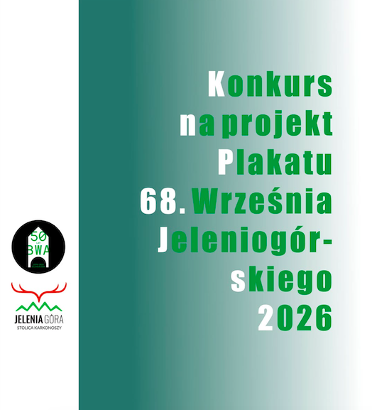 Ogólnopolski Konkurs na Projekt Plakatu 68. Września Jeleniogórskiego 2026. Organizatorzy: BWA w Jeleniej Górze i Miasto Jelenia Góra.