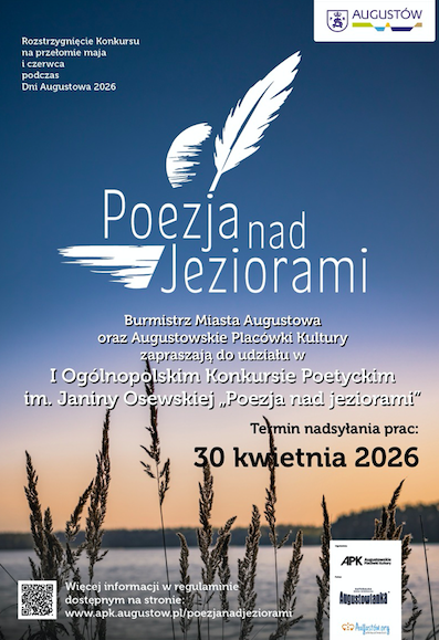 Burmistrz Miasta Augustowa oraz Augustowskie Placówki Kultury zapraszają do udziału w I Ogólnopolskim Konkursie Poetyckim im. Janiny Osewskiej „Poezja nad jeziorami”.