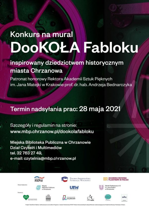 Organizatorem konkursu na projekt i wykonanie muralu jest Miejska Biblioteka Publiczna w Chrzanowie. Mural powinien nawiązywać do dziedzictwa, historii i kultury Chrzanowa, budzić pozytywne emocje…