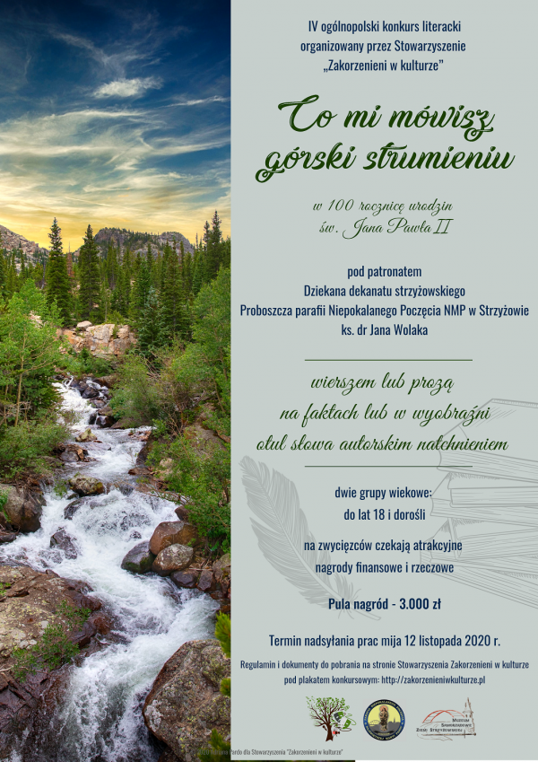 IV ogólnopolski konkurs literacki organizowany przez Stowarzyszenie „Zakorzenieni w kulturze” w 100 rocznicę urodzin św. Jana Pawła II. Dwie grupy wiekowe: do lat 18…
