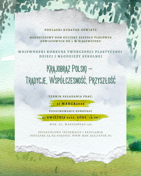 Podlaski Kurator Oświaty oraz Młodzieżowy Dom Kultury Zespołu Placówek Oświatowych nr 2 w Białymstoku zapraszają dzieci i młodzież z województwa podlaskiego do udziału w…
