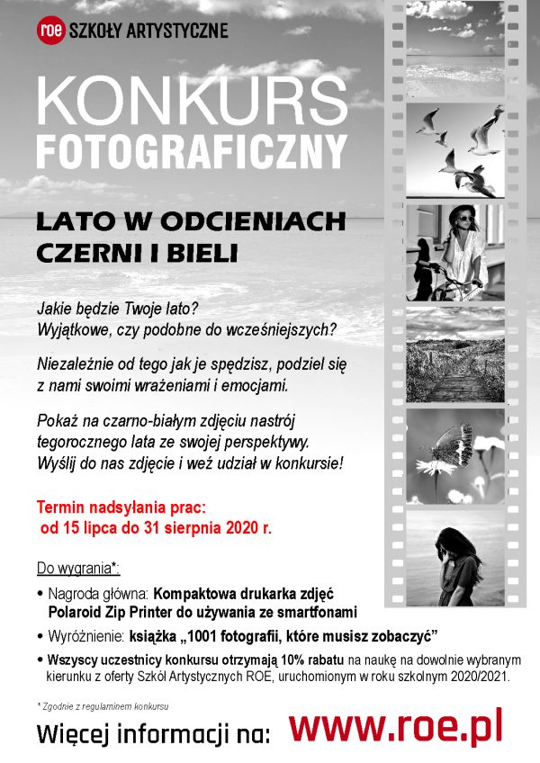 Regionalny Ośrodek Edukacji, prowadzący Szkoły Artystyczne ROE, zachęca uczestników do podzielenia się wrażeniami z tegorocznego lata i pokazania ich na czarno-białych zdjęciach. Inspiracją do…